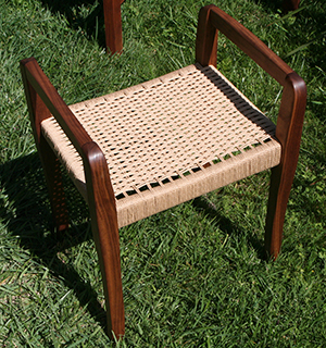 Two Hobbit Chairs of walnut. On left uses conventional Woven Danish cord seat of walnut.