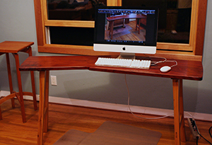 Office Table w/drawers. Floating top hall table of sinker Small dining table of Cherry. Tom's computer desk featuring a slab of sinker Small table of Zebrawood and delicate Wenge legs. |