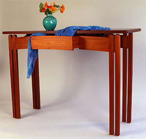Everyone can use more horizontal surfaces in their lives. Thus, I have built numerous tables over the years. Categories: Download a two-page porfolio PDF Small table of sinker H. Mahogany. Hall table featuring Bubinga w/Wenge legs.