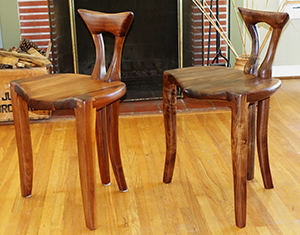 Two Hobbit Chairs of walnut. On left uses conventional Woven Danish cord seat of walnut.