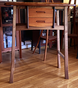 Office Table w/drawers. Floating top hall table of sinker Small dining table of Cherry. Tom's computer desk featuring a slab of sinker Small table of Zebrawood and delicate Wenge legs. |